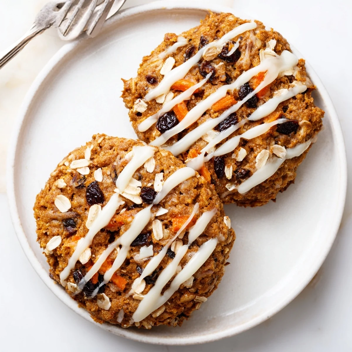 The optional cream cheese glaze adds tangy sweetness that perfectly complements the spiced, buttery cookie base. Each bite delivers the comforting flavors of traditional carrot cake—moist texture, earthy carrots, crunchy nuts—conveniently portioned for snacking or sharing.