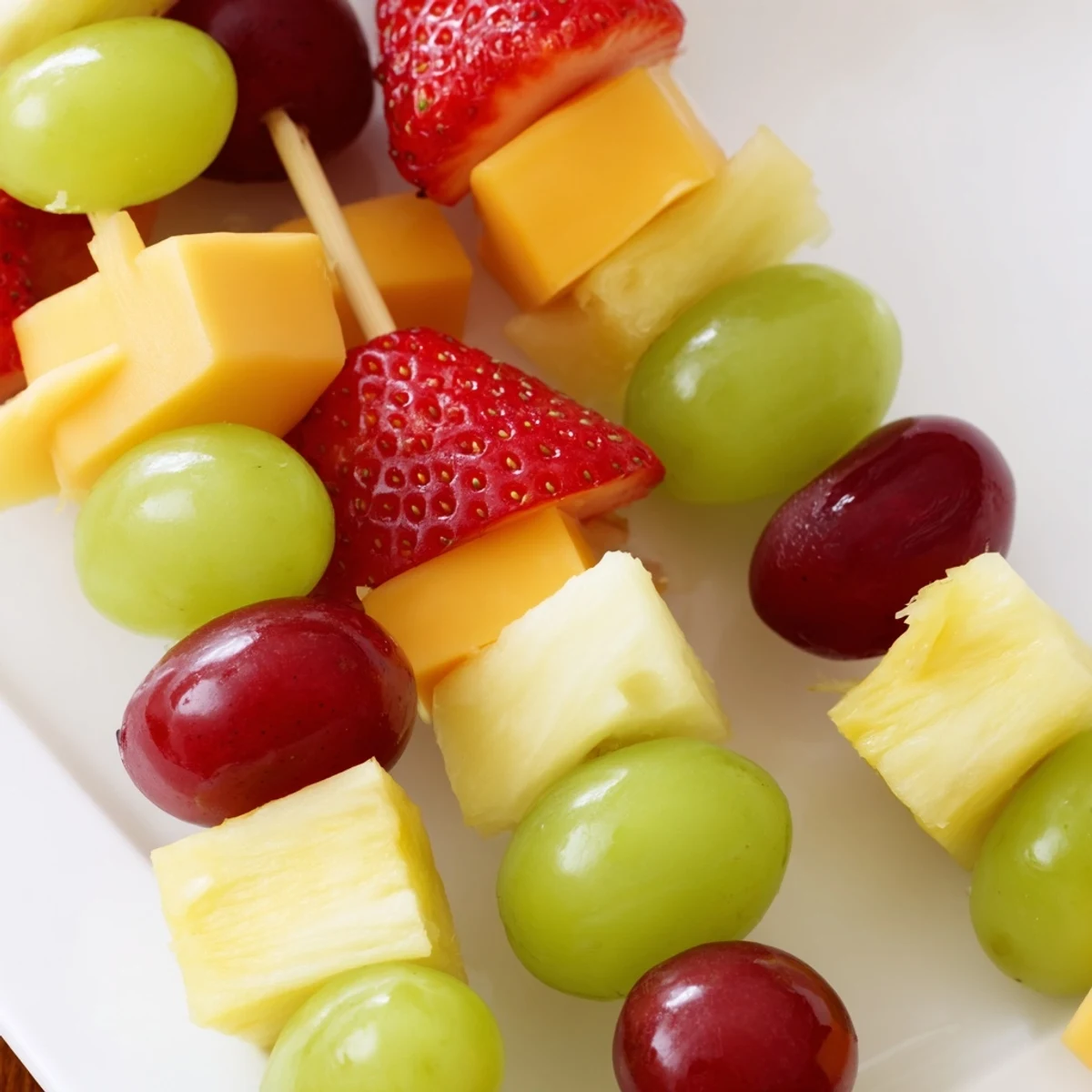 Firm fruits hold up well on skewers—grapes, strawberries, pineapple chunks, melon cubes, and kiwi are excellent choices. Avoid soft fruits that might slide off or get mushy.