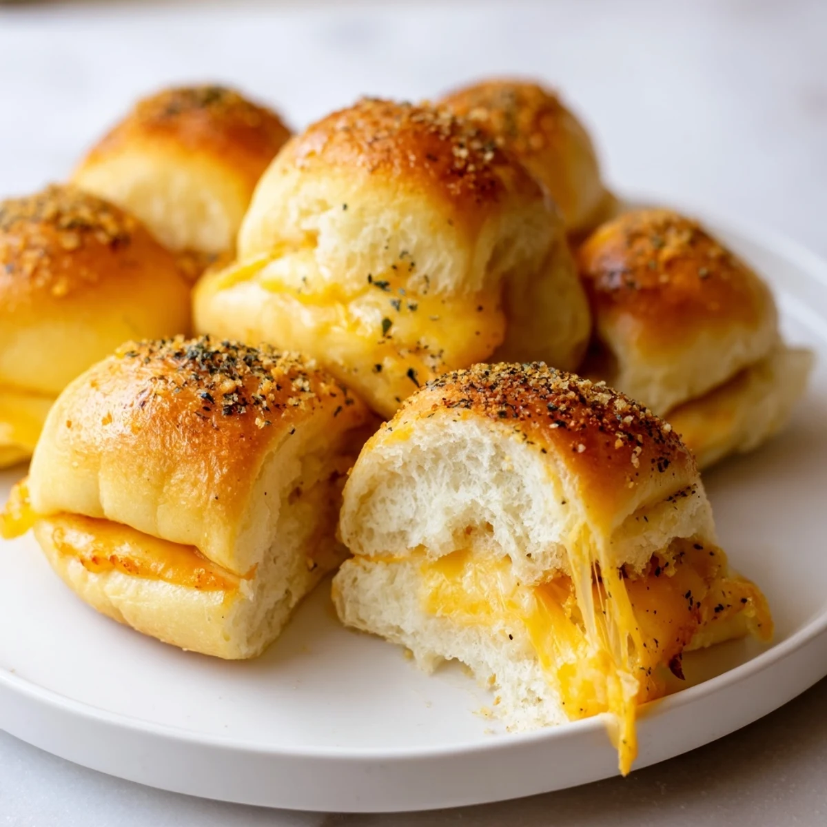 These bite-sized sandwiches transform Hawaiian sweet rolls into irresistible finger food by slicing the entire roll package horizontally, layering with sharp cheddar cheese, and brushing with melted butter seasoned with garlic powder and parsley. After 15 minutes in the oven, the rolls emerge golden brown with perfectly melted cheese creating that ideal pull-apart texture everyone loves.