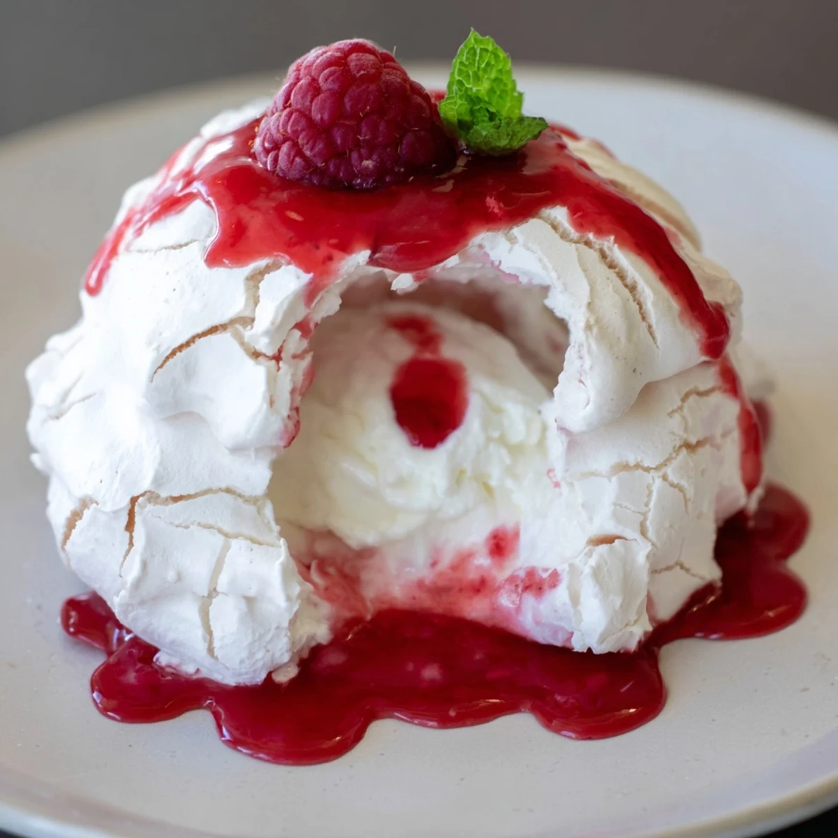 - Drizzle each bomb generously with the chilled raspberry coulis. Garnish with fresh raspberries and mint leaves if you are feeling fancy.